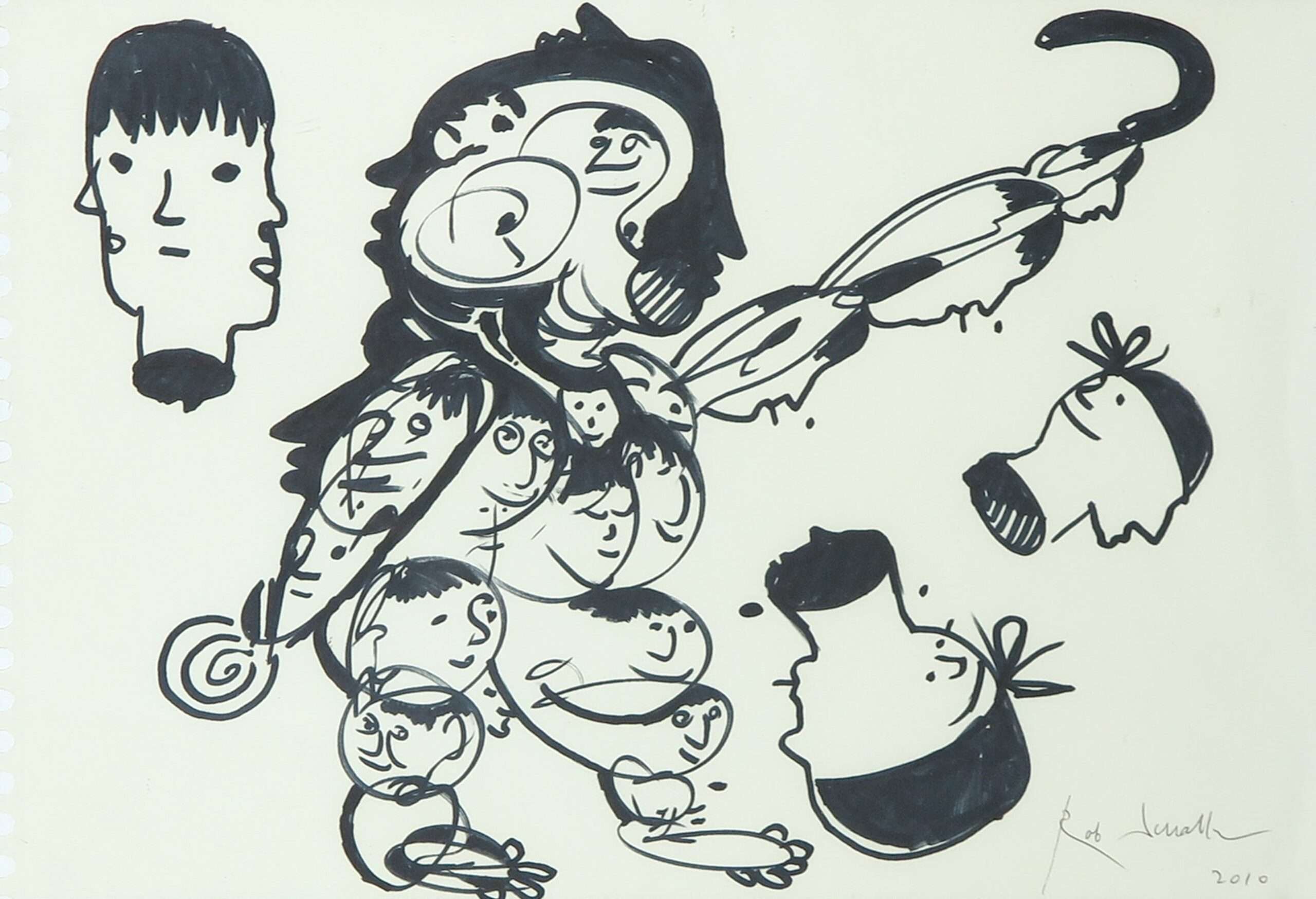 Deze stifttekening “Hoofden” van Rob Scholte is vervaardigd in 2010, in het voormalig Rob Scholte Museum te Den Helder.